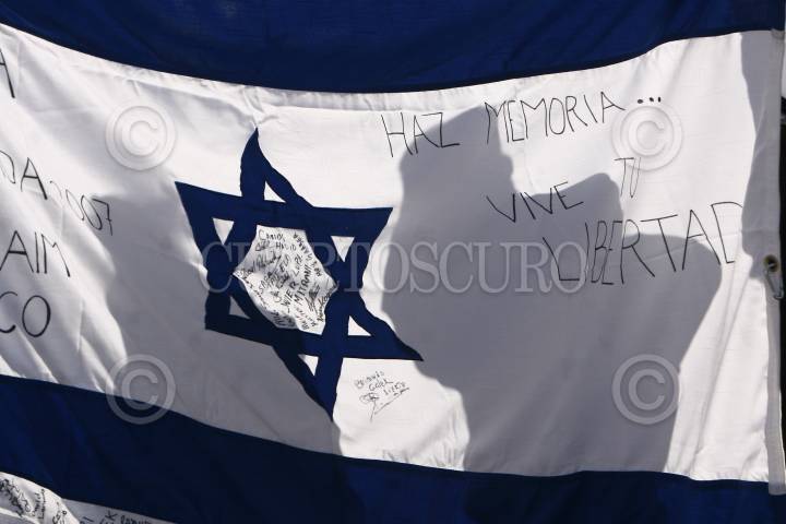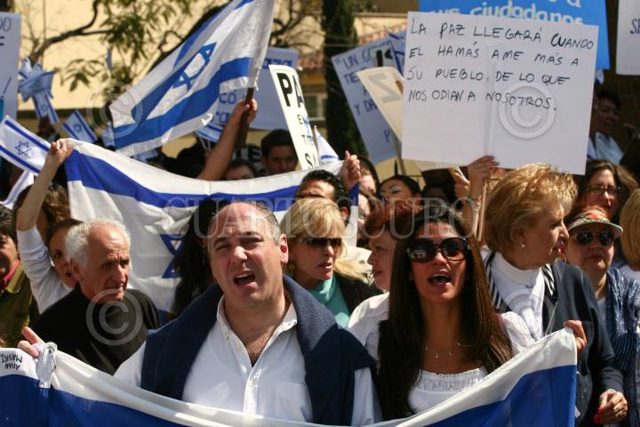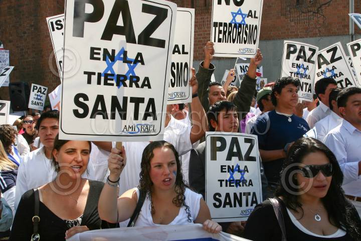 MÉXICO, D.F., 09ENERO2009.- Ciudadanos de origen israelí avencidados en nuestro país junto con simpatizantes organizaron un protesta pacífica en las afueras de la embajada de Israel en Lomas de Chapultepec, para pedir se termine el sitio de guerra que se vive en medio oriente después de que hace unas semanas se desato un conflicto bélico en la Franja de Gaza territorio que se disputa los judíos con la organización árabe Hamas. FOTO: MOISÉS PABLO/CUARTOSCURO.COM