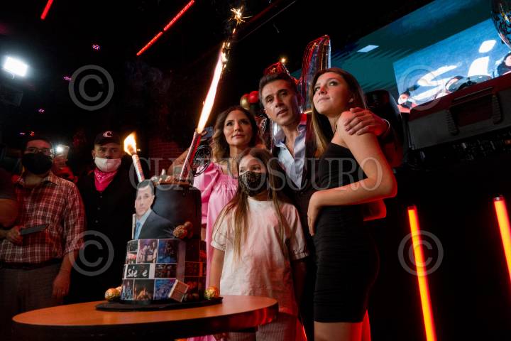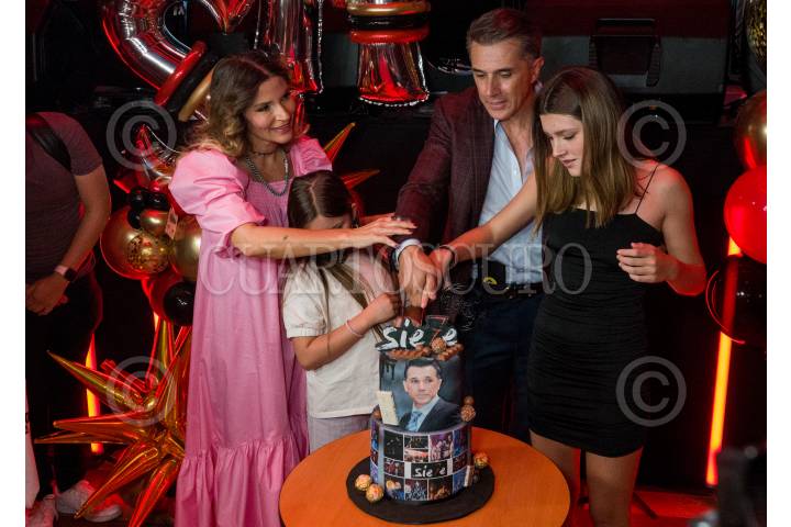 La actriz Issabela Camil y Sergio Mayer en compañía de sus hijas Victoria y Antonia Mayer Camil durante la celebración del cumpleaños del actor.