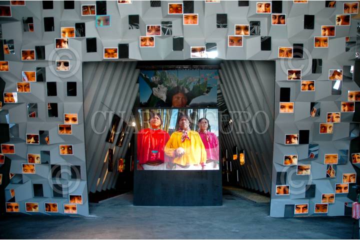 MÉXICO D.F.,04MARZO2010.- Con cientos de fotografías y finalizando con un vídeo del fotógrafo Willy Souza se muestra el sentimiento de pertenencia a una nación y el sentido de la protección de nuestros acervos patrimoniales, de nuestros recursos naturales, la riqueza cultural, artística y popular en el museo itinerante México en tus sentidos que se encuentra en la plancha del Zócalo capitalino y que abrió sus puertas al público en general después de ser inaugurado ayer por la noche. FOTO: RODOLFO ANGULO/CUARTOSCURO.COM