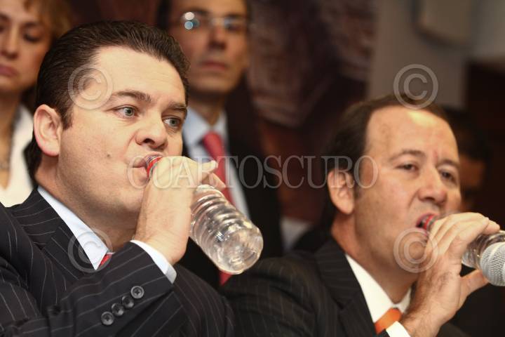 MÉXICO, D.F., 28JULIO2011.- Fernando Oliviera Rocha, sub-secretario de operación turística de la SECTUR y Mario Sánchez Ruiz, presidente del Consejo Coordinador Empresarial en conferencia de prensa dieron a conocer que Riviera Nayarit-Puerto Vallarta, será la nueva cede del tianguis turístico itinerante 2012, así anunciaron que para el año 2013 la sede será la ciudad de Puebla y en 2014 lo realizarán en conjunto Riviera Maya-Cancún, en Quintana Roo. FOTO: SAÚL LÓPEZ/CUARTOSCURO.COM