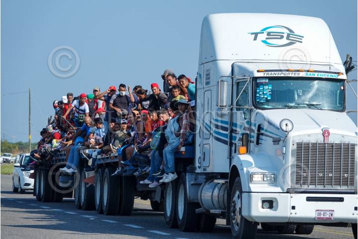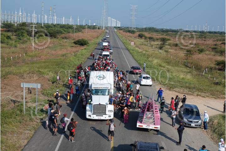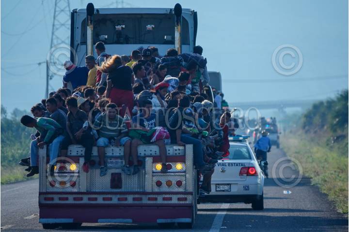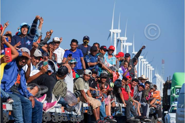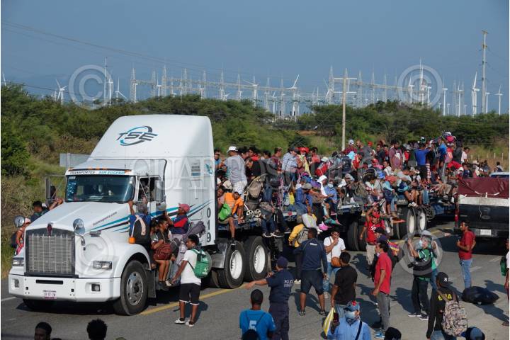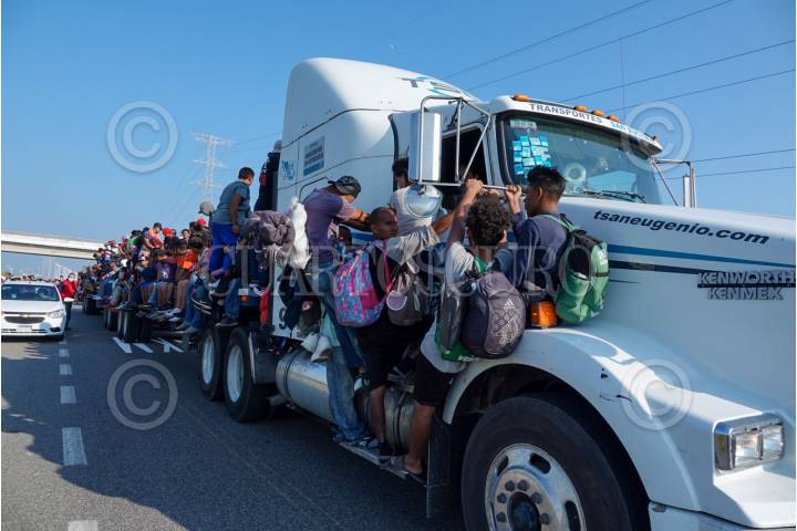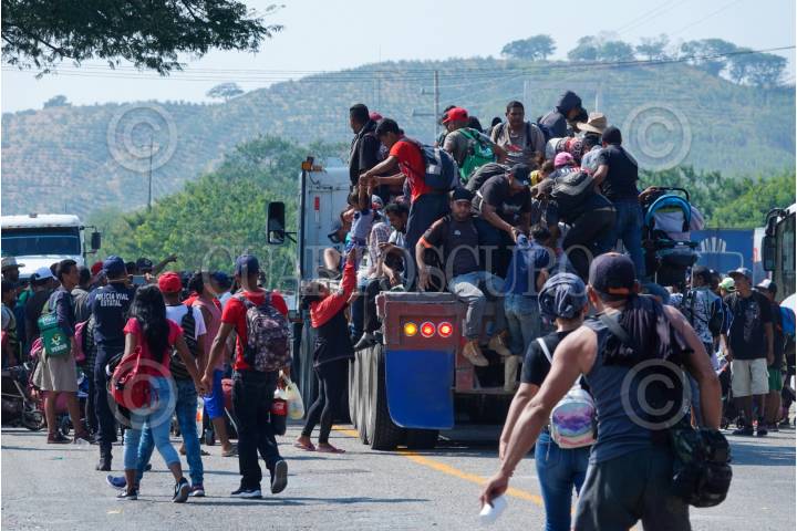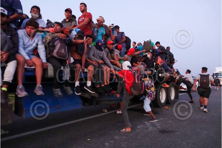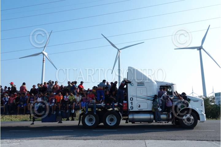 La Caravana Migrante continúa su paso por el Itsmo de Tehuantepec, ahí las personas aprovecharon aventón en diversos camiones de carga