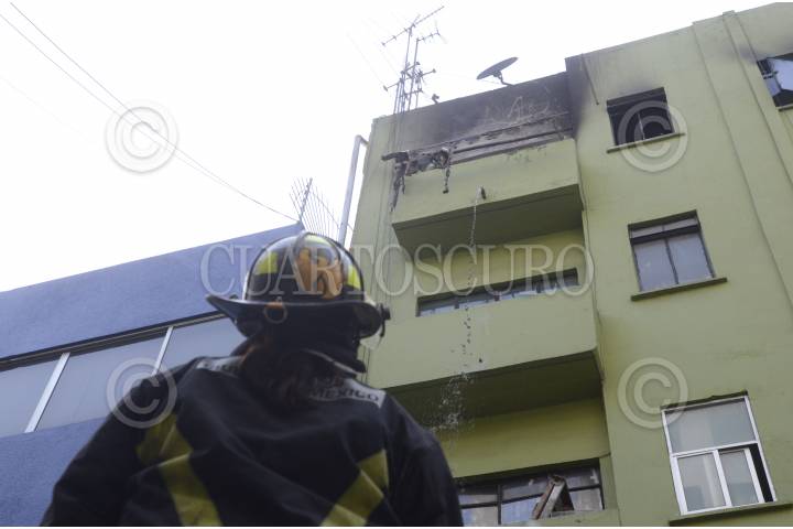 MÉXICO, D.F., 16FEBRERO2013.- El departamento 506 ubicado en el número 28 de la calle de Iturbide en el Centro se incendió, los bomberos controlaron el siniestro que no arrojo heridos. FOTO: IVÁN MENDEZ /CUARTOSCURO.COM