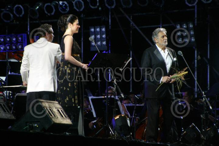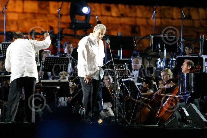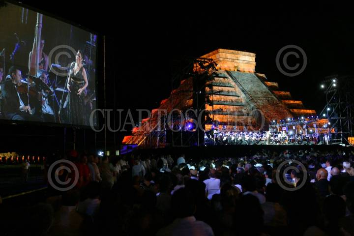 CHICHEN ITZA, YUCATÁN, 04OCTUBRE2008.- El tenor español Placido Domingo, ofreció su concierto "De las Mil Columnas", el cantante fue acompañado por Ana María Martínez y se realizó en la zona arqueológica de Chichen Itza. FOTO: HÉCTOR OSNAYA/CUARTOSCURO.COM
