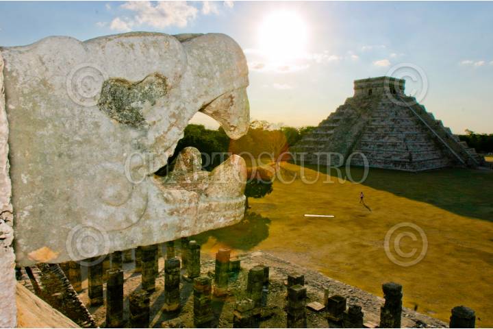 CHICÉN ITZÁ, YUCATÁN, 29AGOSTO2007.- La zona arqueológica más importante de la cultura Maya se ubica en la parte central norte de la Península, ahí fueron construidos alrededor de los años 435 y 455 la famosa pirámide de Kukulkan, el Cenote sagrado, el Observatorio, un campo de juego de pelota, el Templo de los guerreros y un cementerio. El nombre de Chichén-Itzá tiene raíz maya y significa "en la orilla del pozo de los itzáes". FOTO: MARCO POLO GUZMÁN HERNÁNDEZ/CUARTOSCURO.COM
