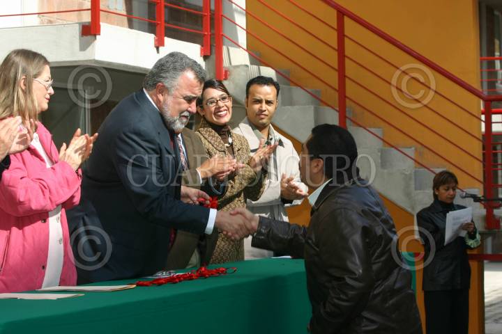 MEXICO, D.F., 17OCTUBRE2005.- Alejandro Encinas Jefe de Gobierno Distrito Federal, Laura Itzel Castillo Juárez secretaría desarrollo Urbano y vivienda durante la entrega viviendas en las delegaciones Iztacalco y Cuahtecmoc. FOTO: Leonardo Casas/CUARTOSCURO.COM