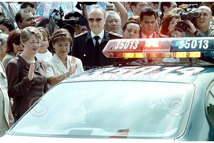 Laura Itzel Castillo, Rosario Robles y Alejandro Gertz entregaron 120 patrullas en la Alameda Sur, ubicada en Culhuacán, zona con alto índice de elincuencia en la ciudad de México