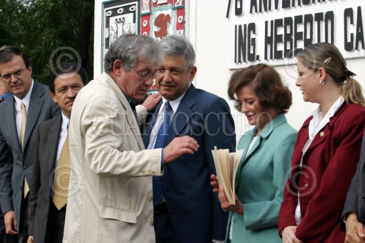 MEXICO, D.F. 29MAYO2005.- Laura Itzel Castillo, secretaria de Instituto de Vivienda, Andrés Manuel López Obrador, jefe de gobierno del Distrito Federal, Claudia Sheinbaum, secretaria del medio ambiente durante la inauguración de las obras viales del Eje 5 Poniente. FOTO: Nelly Salas/CUARTOSCURO.COM