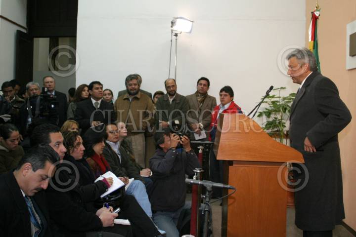 MÉXICO, D.F, 04DICIEMBRE2006.- Andrés Manuel López Obrador, ex-candidato a la presidencia, ofreció una conferencia de prensa en sus oficinas de la col. Roma, para anunciar una inciativa en materia de salud. Lo acompañaron integrantes de su gabinete como Marío De Constanzo y Laura Itzel Castillo. FOTO: MOISÉS PABLO/CUARTOSCURO.COM