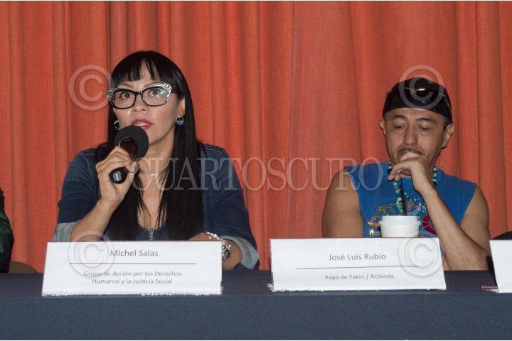 CIUDAD DE MÉXICO, 27JUNIO2017.- Michel Salas, integrante del grupo de Acción por los Derechos Humanos y la Justicia Social, y José Luis Rubio, padre de Yakiri una joven que mató a su agresor en un intento de violación; acompañaron en una conferencia de prensa a María de la Luz Hernández, quien es mamá de Itzel, una joven de 15 años que asesinó a su agresor cuando la agredía sexualmente. En el encuentro denunciaron que la familia de Itzel ha sufrido varias amenazas, además de irregularidades en el proceso penal por homicidio que vive la menor. FOTO: SELENE PACHECO /CUARTOSCURO.COM