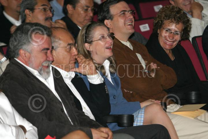 MEXICO, D.F. 05DICEMBRE2004.- Alejandro Encinas, secretario de gobierno, Laura Itzel Castillo, titular del instituto de vivienda del D. F., Marcelo Ebrard, secretario de seguridad pública del D. F. y Berta Luján, contralora general del D. F. durante la lectura del Cuarto informe trimestral de gobierno del jefe de gobierno. FOTO: Nelly Salas/CUARTOSCURO.COM
