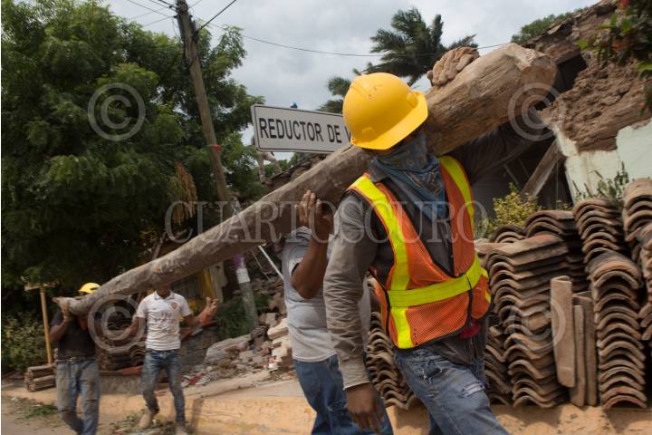 ASUNCIÓN IXTALTEPEC, OAXACA, 30OCTUBRE2017.- A más de dos meses del sismo del 7 de septiembre que azotó la región del Istmo en Oaxaca, continúan las labores de demolición y limpieza en los edificios afectados. FOTO: TERCERO DÍAZ /CUARTOSCURO.COM