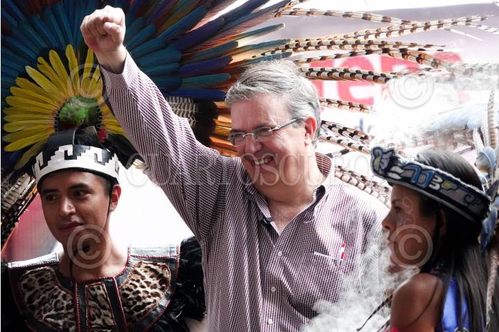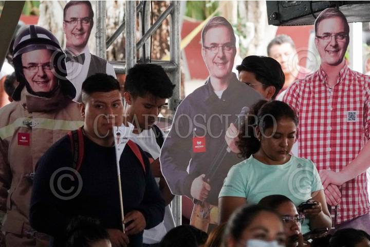 Aspecto de las diferentes versiones de Marcelo Ebrard previo a la asamblea informativa en la explanada municipal de Ixtapaluca, Estado de México, cómo parte de su gira para la elección interna de MORENA.