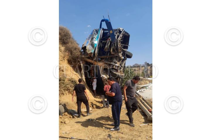 IXTAPALUCA, ESTADO DE MÉXICO, 18MARZO2024.- Cuatro muertos y 15 heridos dejó la volcadura de un camión de pasajeros, en el kilómetro 43, de la autopista México-Puebla. FOTO: CUARTOSCURO.COM