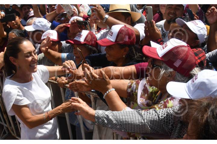 LA MAGDALENA ATLICPAC, ESTADO DE MÉXICO, 09ABRIL2024.- Claudia Sheinbaum, candidata a la presidencia por la coalición "Sigamos Haciendo Historia (PT, PVEM y Morena), durante su mitin realizado Geovillas San Jacinto. FOTO: MARIO JASSO/CUARTOSCURO.COM