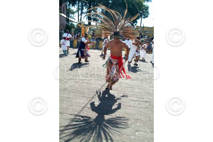 MEXICO, D.F.02ENERO2005.- Danzantes realizaron un acto frente a la iglesia principal de San Juan Ixtayopan donde comenzaron los festejos de la Virgen de la Soledad. FOTO: Iván Stephens/CUARTOSCURO.COM