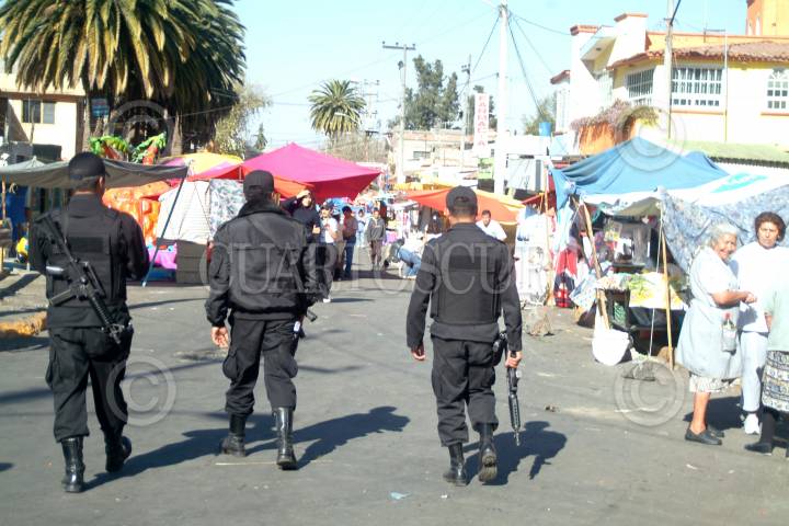 MEXICO, D.F.02ENERO2005.- Elementos del agrupamiento Fuerza de Tarea de la Secretaría de Seguridad Pública, estuvieron presentes en las festividades de la Virgen de la Soledad en San Juan Ixtayopan, Tláhuac. FOTO: Iván Stephens/CUARTOSCURO.COM
