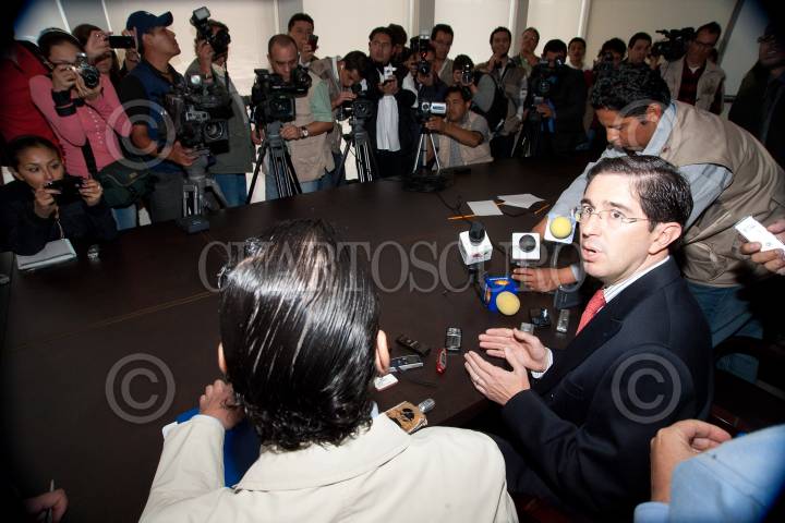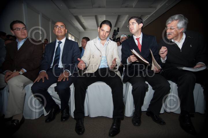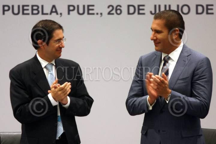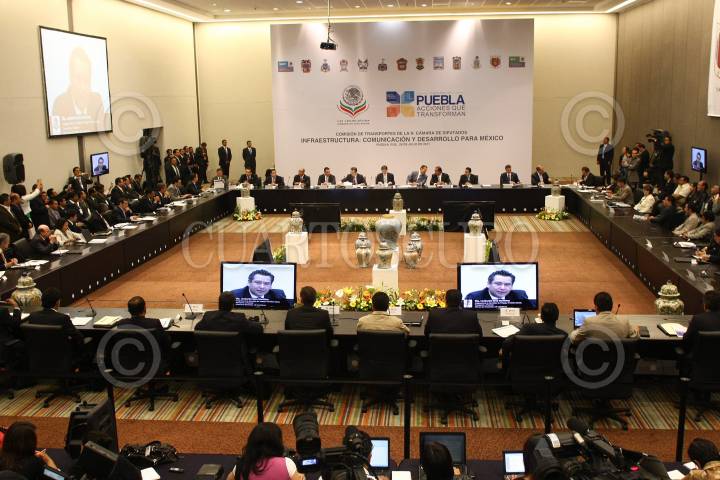 PUEBLA, PUEBLA, 26JULIO2011.- Dionisio Pérez Jacome, secretario de Comunicaciones y Transportes, junto al gobernador del estado Rafael Moreno Valle encabezaron la reunión de trabajo con la comisión de transportes de la Cámara de Diputados local. En el encuentro abordaron el tema sobre infraestructura: comunicación y desarrollo para México. FOTO: FRANCISCO GUASCO/CUARTOSCURO.COM