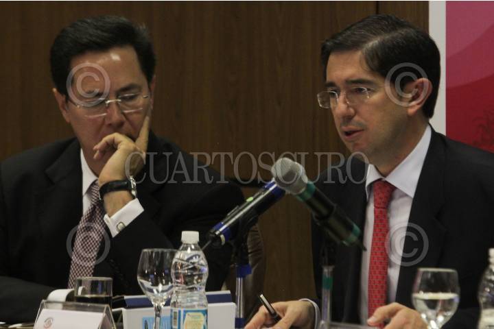 MÉXICO, D.F., 31MARZO2011.- Dionisio Perez Jácome, Secretario de Comunicaciones y Transporte junto a Fernando Castro Trenti, durante la reunión de Trabajo de la Comisión de Comunicaciones y Transporte. FOTO: ENRIQUE ORDÓÑEZ/CUARTOSCURO.COM