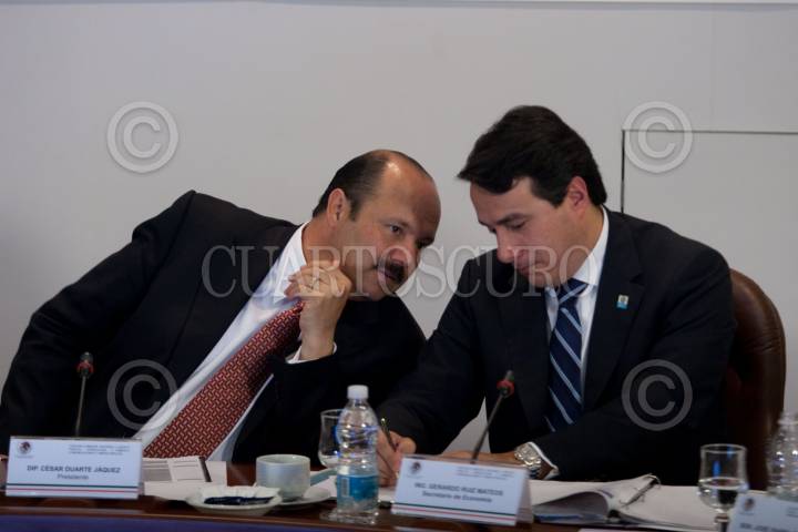 MÉXICO, D.F., 28JULIO2009.- César Duarte Jaquez, presidente de la mesa directiva de la Cámara de Diputados y el secretario de Economía Gerardo Ruiz Mateos, durante su comparecencia en el Senado de la República. FOTO: RICARDO CASTELAN/CUARTOSCURO.COM