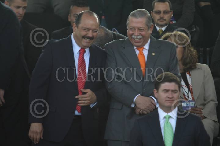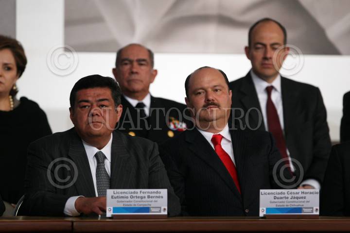 MÉXICO, D.F., 02JUNIO2011.- César Duarte Jáquez, gobernador de Chihuahua y Egidio Torre Cantú, gobernador de Tamaulipas durante el evento de conmemoración del Día del Policía que se realizo en el Centro de Alto Mando de la Policía Federal. FOTO: RODOLFO ANGULO/CUARTOSCURO.COM