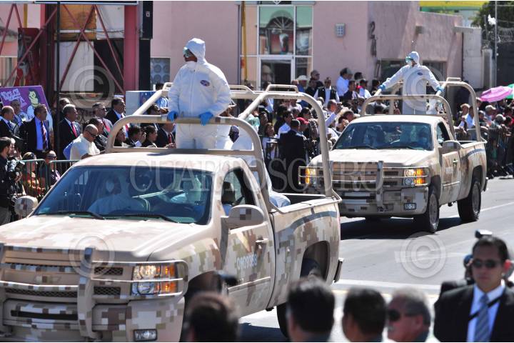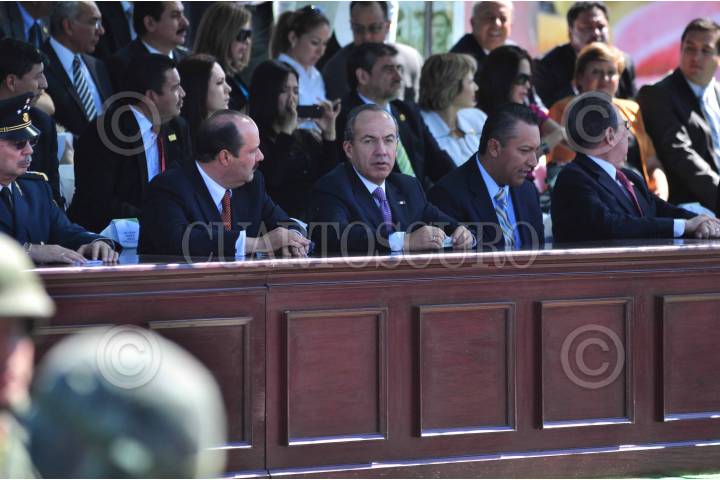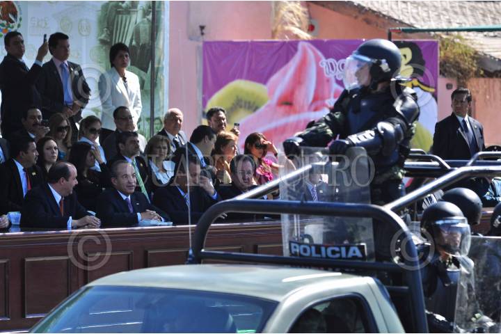 CIUDAD JUÁREZ, CHIHUAHUA, 21MAYO2011.- El titular del Ejecutivo federal Felipe Calderón Hinojosa, el Gobernador del Estado César Duarte Jáquez y decenas miles de Juarenses presenciaron esta mañana el Desfile conmemorativo del Centenario de la Toma de Ciudad Juárez. El contingente cívico militar inició el desplazamiento a las 10 de la mañana en cruce de las avenidas 16 de Septiembre y de las Américas para continuar por esa vía hasta la calle Ignacio Mariscal, y finalizar frente a la antigua Presidencia Municipal. FOTO: NACHO RUÍZ/CUARTOSCURO.COM