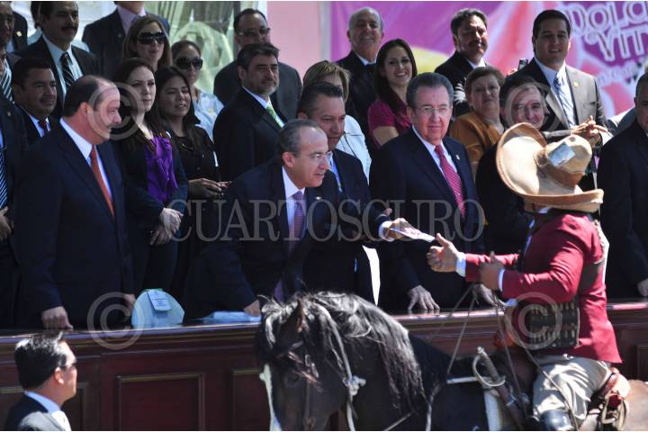 CIUDAD JUÁREZ, CHIHUAHUA, 21MAYO2011.- El Museo de la Revolución en la Frontera (MUREF) fue inaugurado la noche de este viernes por el jefe del Ejecutivo federal, Felipe calderón, acompañado del Gobernador del Estado, César Duarte Jáquez, en ceremonia concurrida por funcionarios de los tres niveles de gobierno, entre estos el el alcalde, Héctor Murguía Lardizábal. FOTO: NACHO RUÍZ/CUARTOSCURO.COM
