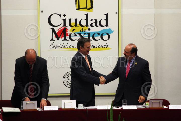 MÉXICO, D.F., 10JUNIO2011.- Marcelo Ebrard Casaubón, Jefe de Gobierno, y César Horacio Duarte Jáquez, gobernador de Chihuahua, anunciaron un mega operativo el cual contará con unos 310.000 policías de los 32 estados de México el cual inicia la próxima semana, el llamado "operativo nacional" contra la inseguridad será "el primer esfuerzo realizado por las entidades de manera paralela, permanente y coordinada", informó hoy Ebrard en su calidad de presidente la Conferencia Nacional de Gobernadores (Conago). FOTO: CUARTOSCURO.COM