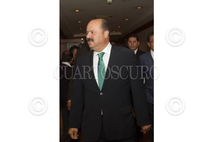 MÉXICO, D.F., 25OCTUBRE2011.- Cesar Duarte Jaquez, gobernador de Chihuahua, previo a dar una conferencia de prensa junto con sus homólogos de Durango y Zacatecas donde denunciaron la grave crísis del campo mexicano en el norte del país. FOTO: MISAEL VALTIERRA/CUARTOSCURO.COM