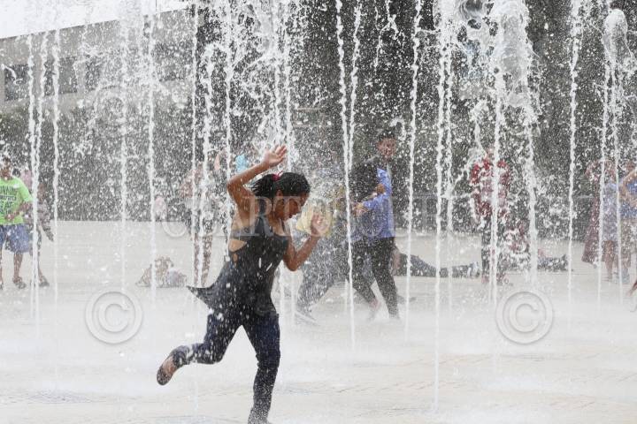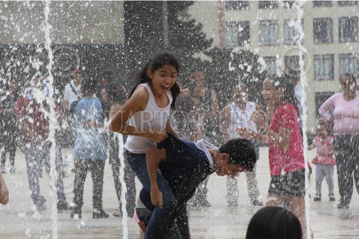 CIUDAD DE MÉXICO, 10ABRIL2017.- Varios jóvenes y niños acudieron a la Explanada Monumento de la Revolución a refrescarse y divertirse en las fuente, durante el inicio de la Semana Santa. FOTO: ANTONIO CRUZ /CUARTOSCURO.COM