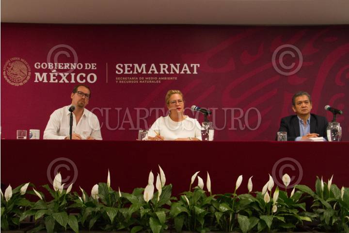CIUDAD DE MÉXICO, 20MARZO2019.- Andrew Rhodes, Comisionado Nacional de Áreas Naturales Protegidas; Josefa González Blanco Ortiz Mena, Titular de la Secretaría de Medio Ambiente y Recursos Naturales(SEMARNAT) y Sergio Sánchez, Subsecretario de Gestión para la Protección Ambiental, durante la presentación del video informativo del programa, Centro de Educación Ambiental “Muros de Agua José Revueltas”, que busca transformar el Centro penitenciario de las Islas Marías en un lugar para enseñar a jóvenes y niños sobre el cuidado del medio ambiente, así mismo se tiene planeado organizar campamentos para biólogos y científico. FOTO: ROGELIO MORALES /CUARTOSCURO.COM