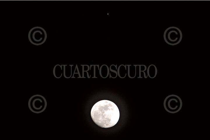 MÉXICO, D.F. 01DICIEMBRE2008.- La luna en cuarto creciente es vista junto al planeta Júpiter en el cielo FOTO: SÁSHENKA GUTIÉRREZ/CUARTOSCURO.COM