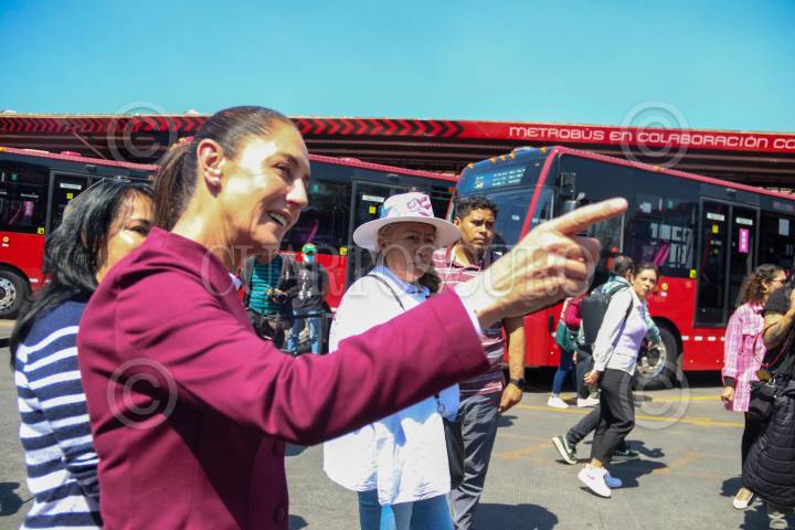 La jefa del Gobierno de la Ciudad de México, Claudia Sheinbaum Pardo, encabezó la salida de Metrobuses completamente eléctricos de la base Júpiter de la alcaldía Gustavo A. Madero.