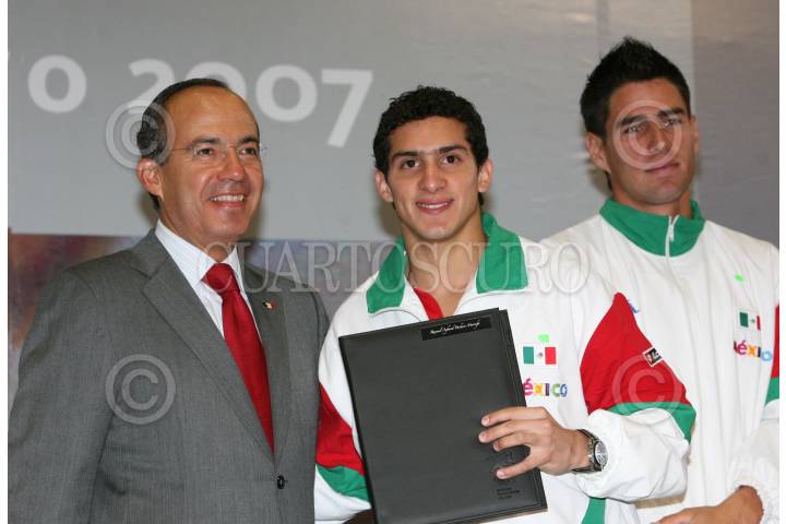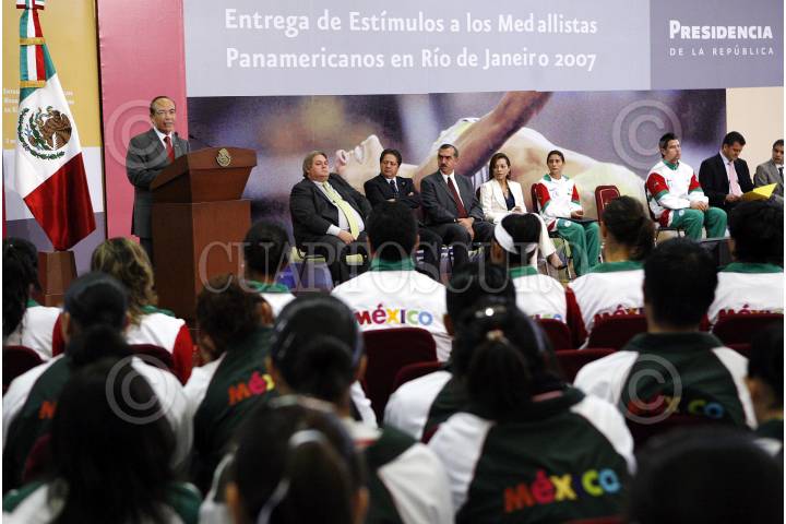 MÉXICOD,F.,03SEPTIEMBRE2007.- El Presidente Felipe Calderón durante la Entrega de Estímulos a los Medallistas Panamericanos en Río de Janeiro 2007. FOTO:ARIEL GUTIERREZ/CUARTOSCURO.COM