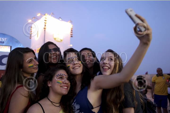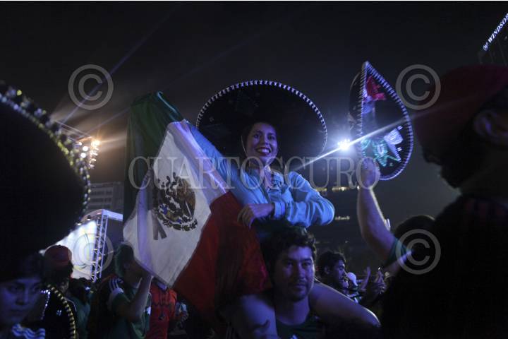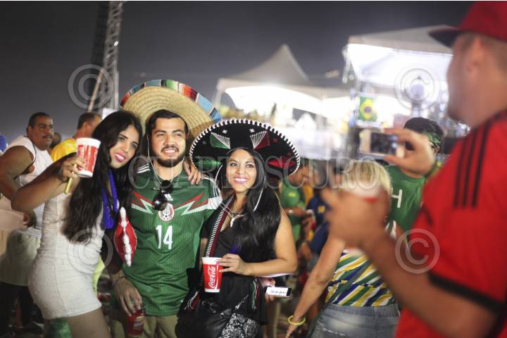 RÍO DE JANEIRO, BRASIL, 17JUNIO2014.- Cientos de aficionados mexicanos y brasileños se reunieron en el Fan Fest de Río de Janeiro para presenciar el empate entre México y Brasil. FOTO: ALAN ORTEGA / CUARTOSCURO.COM