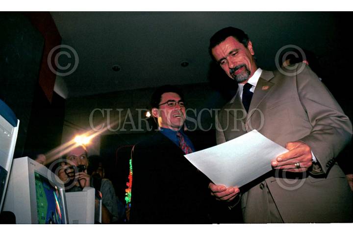 Miguel Angel Correa Jasso, Director del IPN y Carlos Abascal Carranza, Secretario del Trabajo durante un recorrido a una exposición de Turismo y vivienda, después de la firma convenio. FOTO: Eunice Adorno/CUARTOSCURO.COM