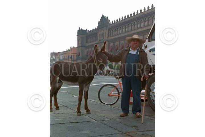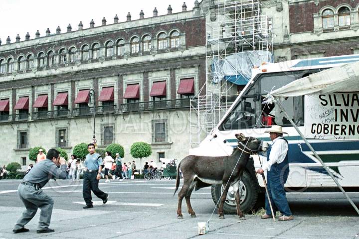 Pedro Jasso de 93 años de edad y el burro "El tabaco" iniciaron un plantón en el zocalo capitalino. Piden que el gobernador Fernando Silva devuelva unos terrenos en San Juan de Guadalupe en San Luis Potosí a lun grupo de comuneros. FOTO: Ricardo Hernández/CUARTOSCURO.COM