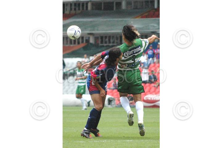 MEXICO, D.F. 06AGOSTO2005.- Mario Alberto Hernández (Atlante) pelea un balón con Jaír García (Santos) en el artido de la jornada 2 del torneo de apertura 2005 en el que Atlante empató a cero goles con el equipo Santos Laguna en el estadio Azteca. FOTO: Iván Stephens/CUARTOSCURO.COM