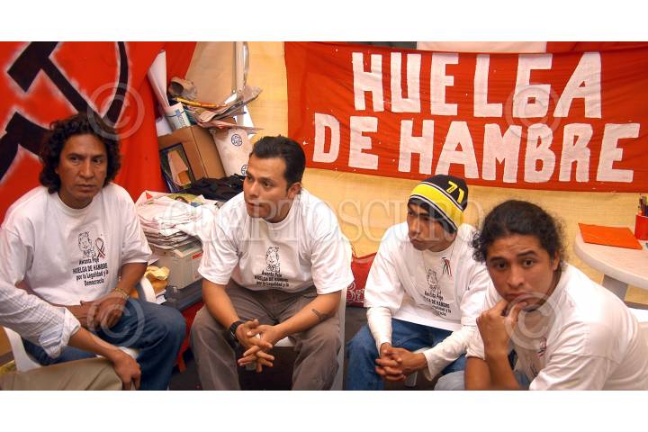 MÉXICO D.F. 13JULIO2006.- Simon Espinoza, Pablo Deantuñano, Jair Patiño y Fernando Santillan, realizan una huelga de hambre a las afueras del Tribunal Federal Electoral, exigiendo el conteo voto por voto. FOTO: Guillermo Perea/CUARTOSCURO.COM