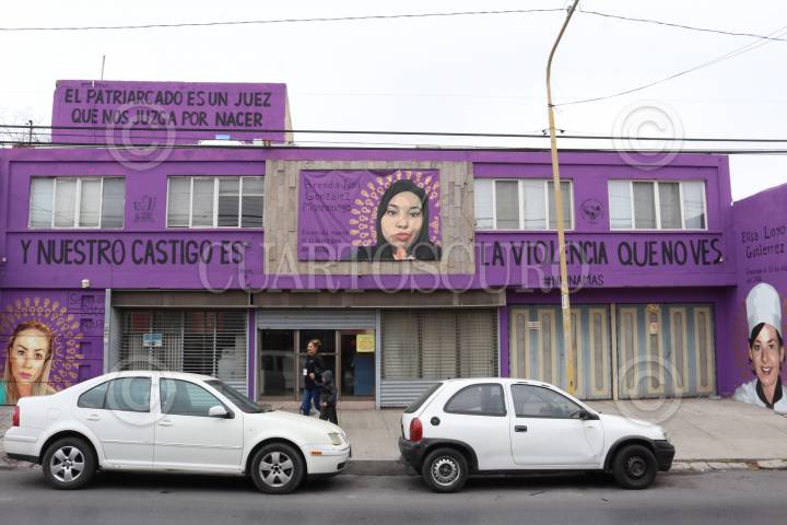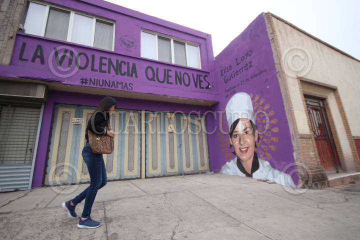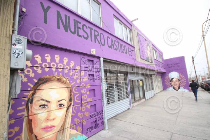 La activista Jackie Campbell acudió a los juzgados municipales para denunciar que supuestamente clausuraron un mural que hizo para denunciar los feminicidios que ocurrido en la ciudad