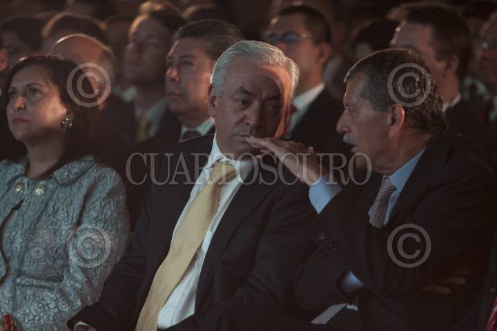 MÉXICO, D.F., 02DICIEMBRE2011.- Los priistas Enrique Jackson, secretario técnico del consejo, Humberto Moreira, dirigente nacional del partido y Cristina Díaz, secretaria general, durante la sesión del XXVIII Consejo Político Nacional. El coahuilense Moreira dejó su cargo tras varios meses en lo que se señalo que durante su gestión al frente de ese estado se adquirieron varios creditos de forma irregular. FOTO: MOISÉS PABLO/CUARTOSCURO.COM