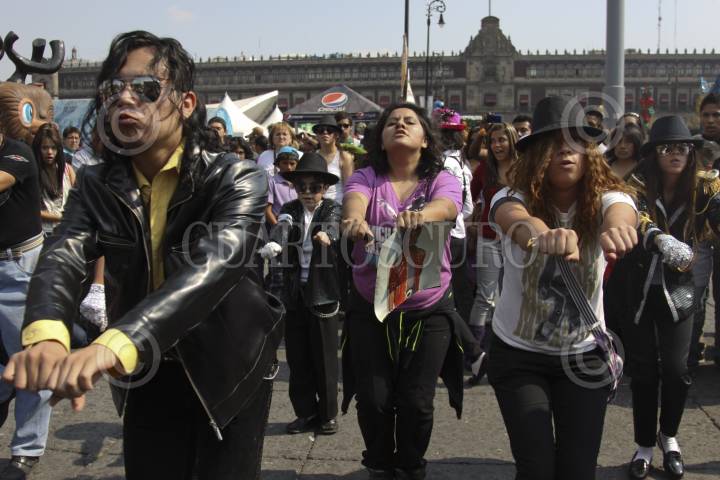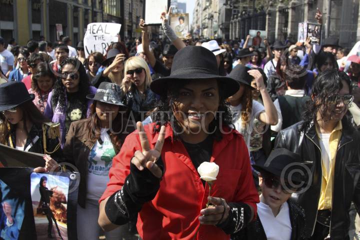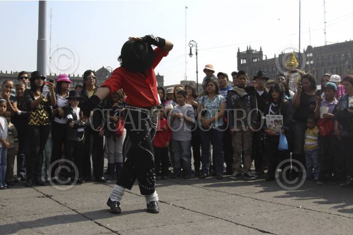MÉXICO, D.F., 30DICIEMBRE2011.- Fanáticos del cantante estadounidense Michael Jackson recorrieron las calles del centro para recordar al cantante con bailes en su honor. FOTO: IVÁN STEPHENS/CUARTOSCURO.COM