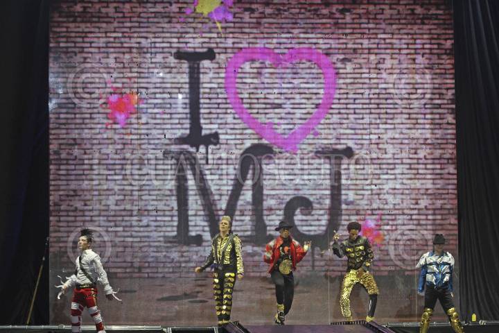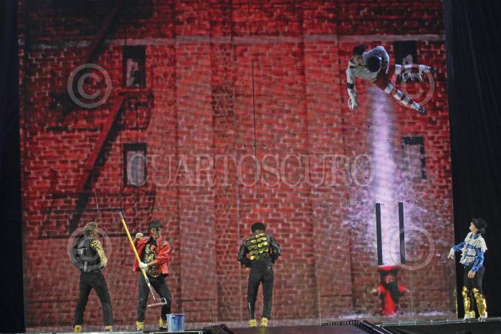 TLAJOMULCO DE ZÚÑIGA, JALISCO, 28AGOSTO2014.- Esta noche en la Arena VFG y en un espectáculo dirigido por el Cirque du Soleil se llevó a cabo la primera de dos presentaciones en Guadalajara del Show “Michael Jackson The Inmortal World Tour”, con la cual cierra la gira de tres años alrededor del mundo. FOTO: FERNANDO CARRANZA GARCIA /CUARTOSCURO.COM