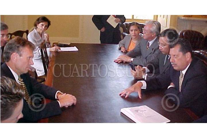 El presiente del Senado Mexicano Enrique Jackson acompañado de un grupo de legisladores mexicanos se entrevisto con el representante del senado Norteamericano Thomas Daschle, en Washington. FOTO:CUARTOSCURO.COM