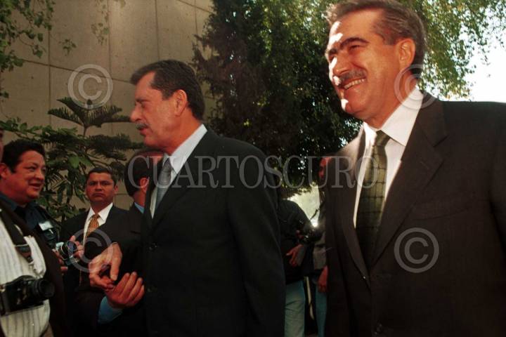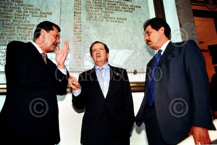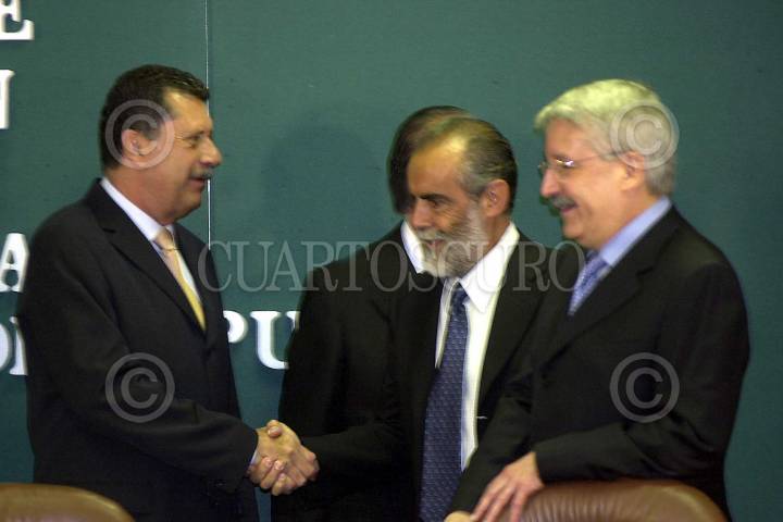 Enrique Jackson, coordinador de la bancada priista en el Senado, Diego Fernández de Cevallos, presidente de la Mesa Directiva del Senado y el diputado Oscar Levin Coppel, momentos antes de iniciar la comparecencia de Francisco Gil Díaz, secretario de Hacienda. FOTO: Oswaldo Ramírez/CUARTOSCURO.COM