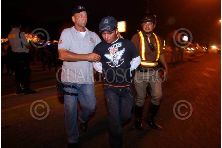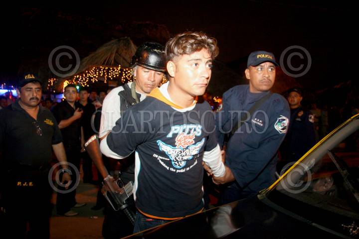 VILLAHERMOSA, TABASCO, 21ENERO2008.- David Jacob de la Cruz Ballester es capturado por elementos policíacos que realizan el operativo nocturno "Tabasco Seguro". El detenido contaba con una orden de aprehensión por el delito de violación, y fué detenido cuando viajaba en un taxi que se negaba a pagar. FOTO: MARCO POLO GUZMÁN HERNÁNDEZ/CUARTOSCURO.COM