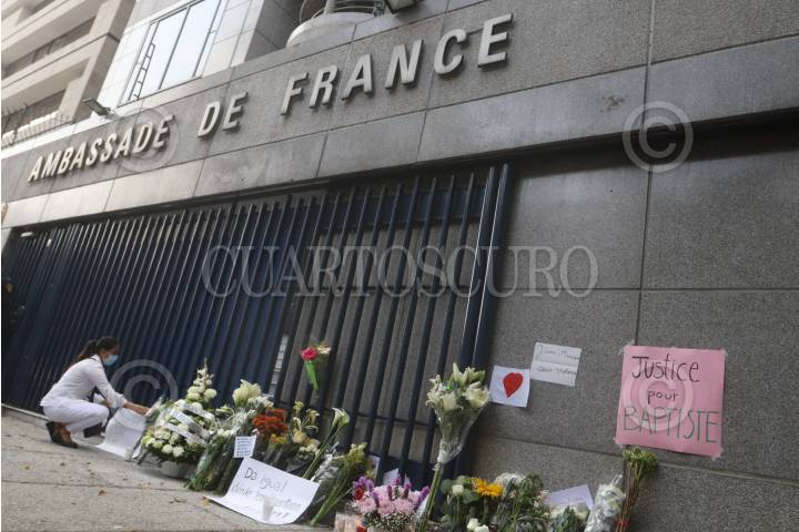 En la embajada francesa se colocaron flores y mensajes de cariño en memoria de Baptiste Jacques Daniel Lormand y Luis Orozco, quienes fueron asesinados la semana pasada.