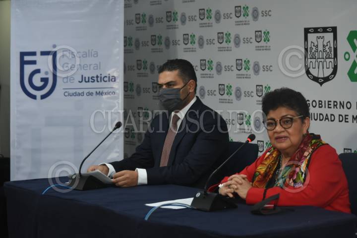 Omar García Harfuch y Ernestina Godoy durante la conferencia de prensa en la que se dieron detalles de la investigaciones del asesinato del ciudad francés Baptiste Jacques Daniel Lormand, y del mexicano Luis Orozco.