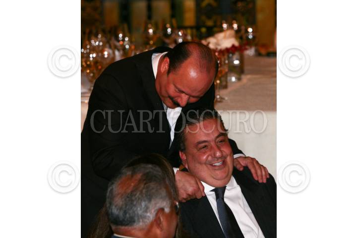 MÉXICO D.F., 09MARZO2009.- El presidente de la mesa directiva de lacamara de diputados, Cesar Duarte Jacquez, saluda al al titular de la SEGOB, Fernando Gómez Mont, durante a la cena de honor que el gobierno de México realizó al presidente de Francia Nicolás Sarkozy y a su esposa Carla Sarkozy. FOTO: SAÚL LÓPEZ/CUARTOSCURO.COM