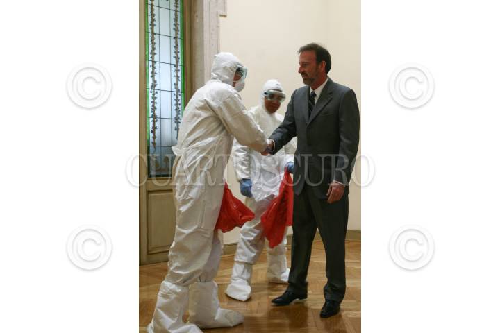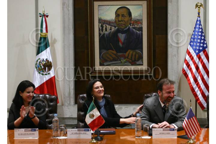 MÉXICO, D.F., 07ENERO2009.- Antonio Garza, embajador norteamericano y Laura Gurza Jaidar, Coordinadora General de Protección Civil durante la ceremonia de más de 100 mil equipos de seguridad personal, con un valor de 805 mil dólares, que serán utilizados por personal de Protección Civil en casos de inundaciones, pero sobre todo ante emergencias de carácter biológico, ante derrames de sustancias peligrosas y posibles pandemias donadas por los Estados Unidos. FOTO: MOISÉS PABLO/CUARTOSCURO.COM9