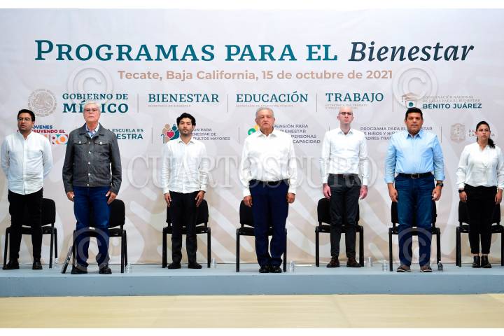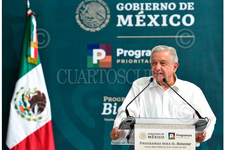 Andrés Manuel López Obrador durante la presentación de Programas para el Bienestar en Tecate, Baja California.